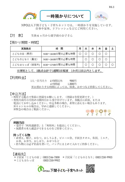 What's NewNPO法人下関子ども・子育ちネットからのお知らせ