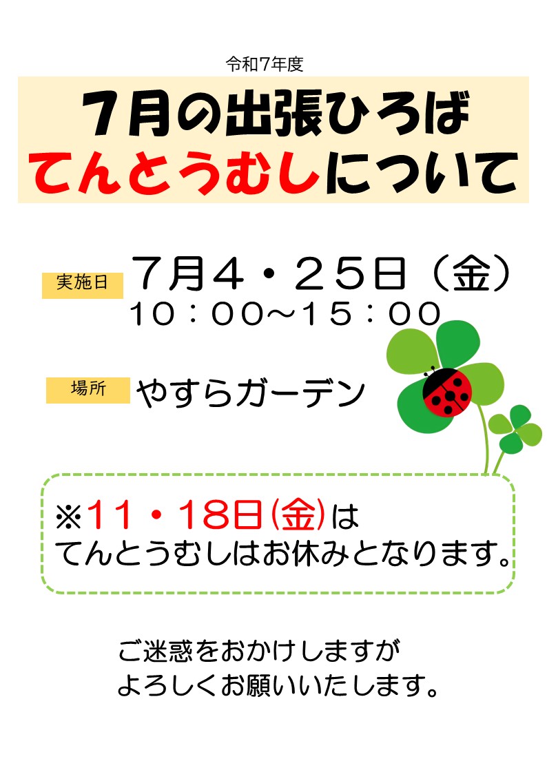 7月の出張ひろば「てんとうむし」(金曜日・やすらガーデン)は、