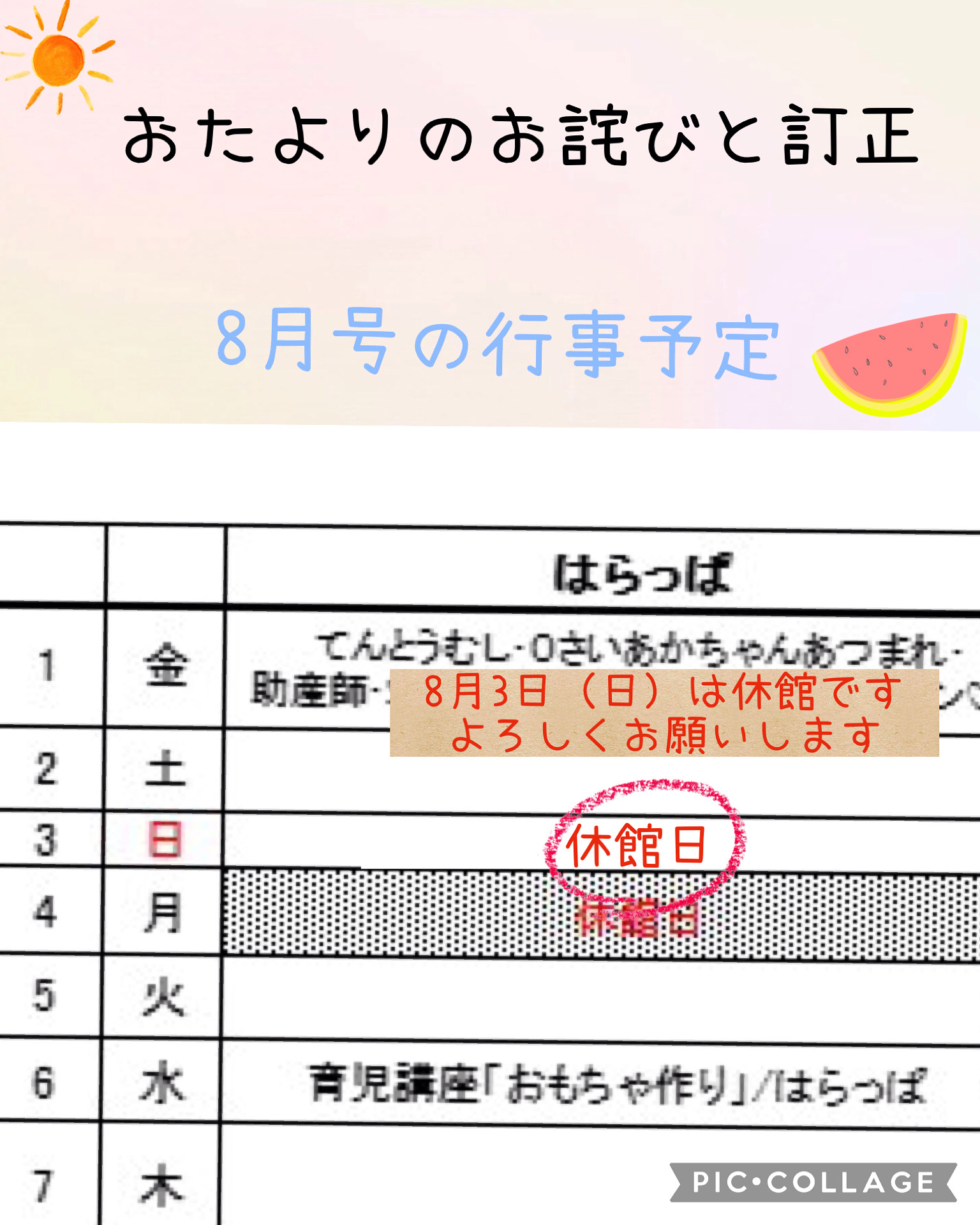 8月の3拠点のおたよりと予定表を発行しました >