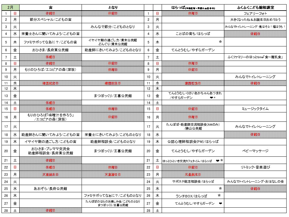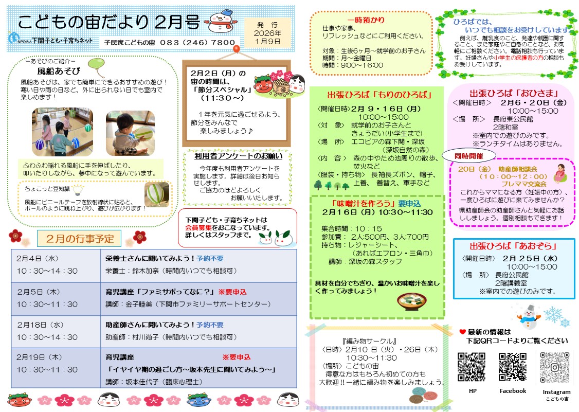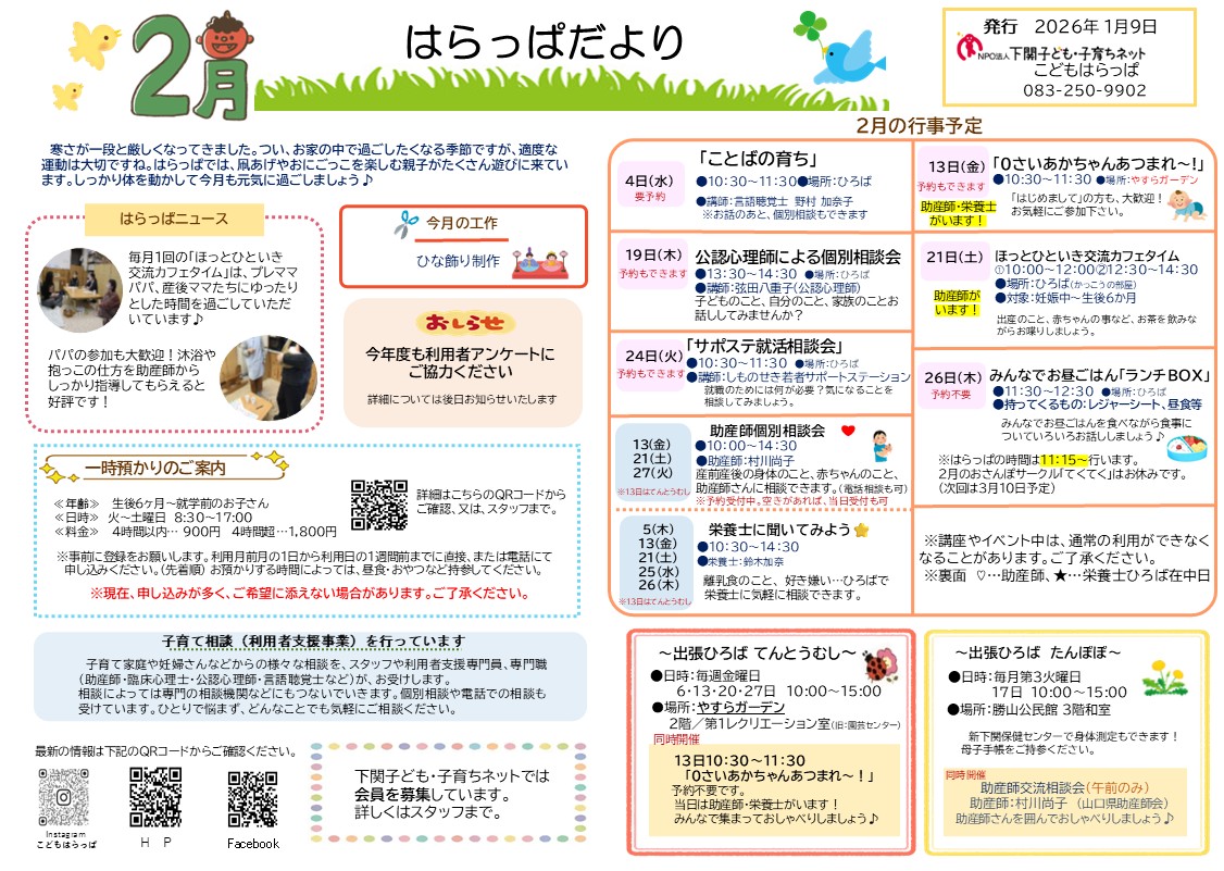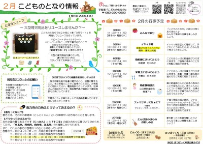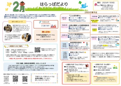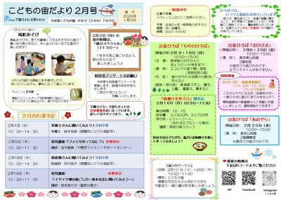 2月のおたよりと予定表を発行しました。気になる講座やイベントは、各拠点までお申し込みください。