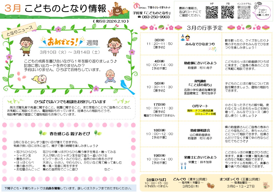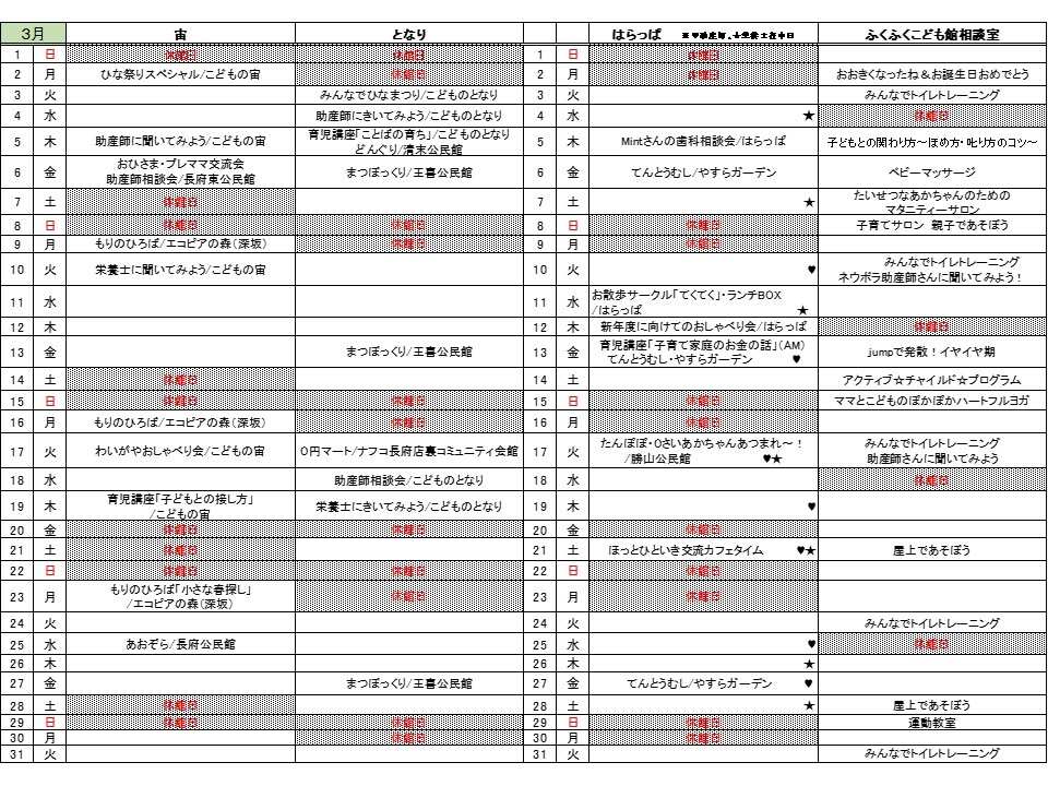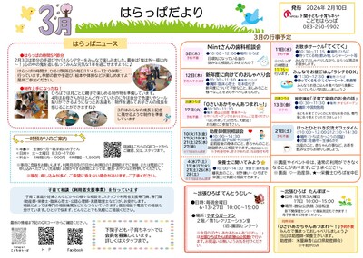 3月の3拠点のおたよりと予定表を発行しました