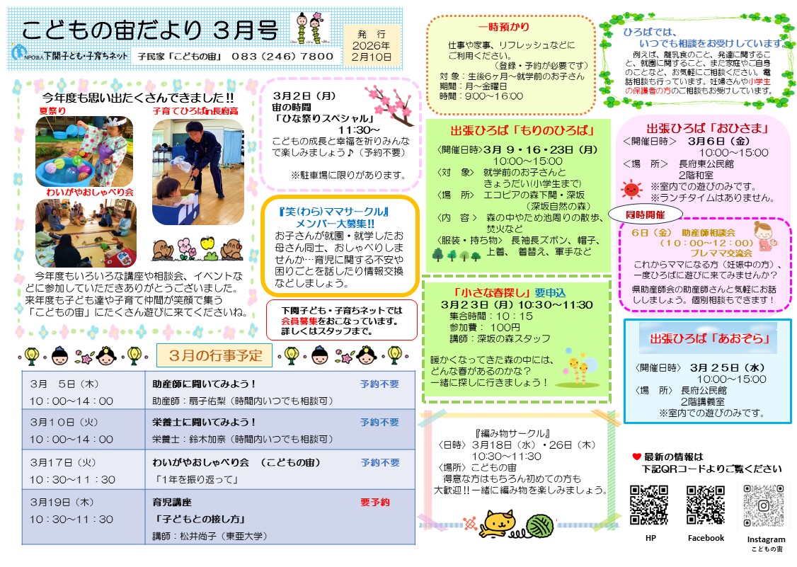 3月のおたよりと予定表を発行しました。気になる講座やイベントは、各拠点までお申し込みください。