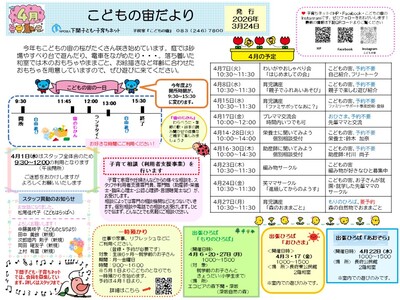 4月のおたよりと予定表を発行しました。気になる講座やイベントは、各拠点までお申し込みください。